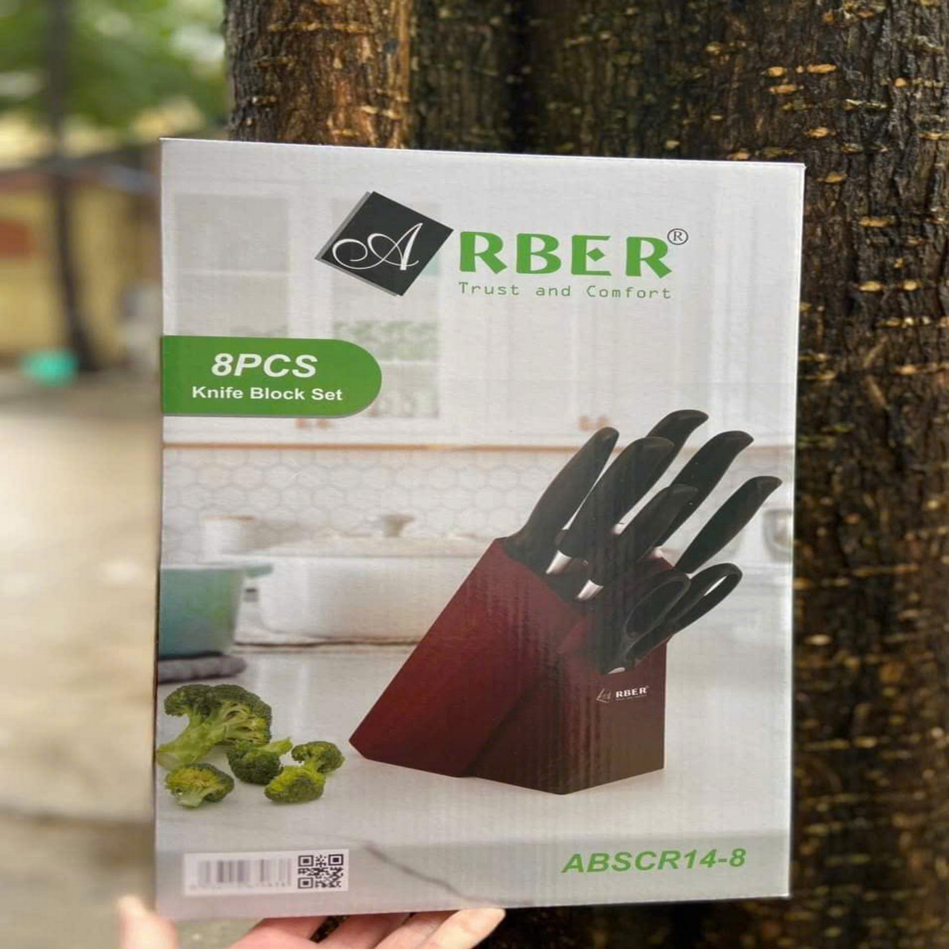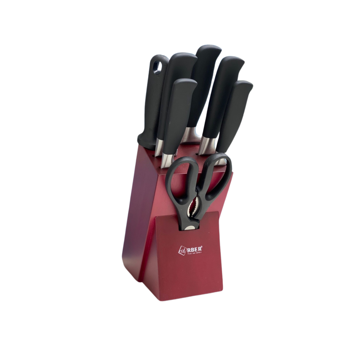 Thiết kế tiện lợi: Bộ đi kèm giá cắm dao và kéo bằng inox, thuận tiện bảo quản gọn gàng trong bếp, dễ lấy khi cần .