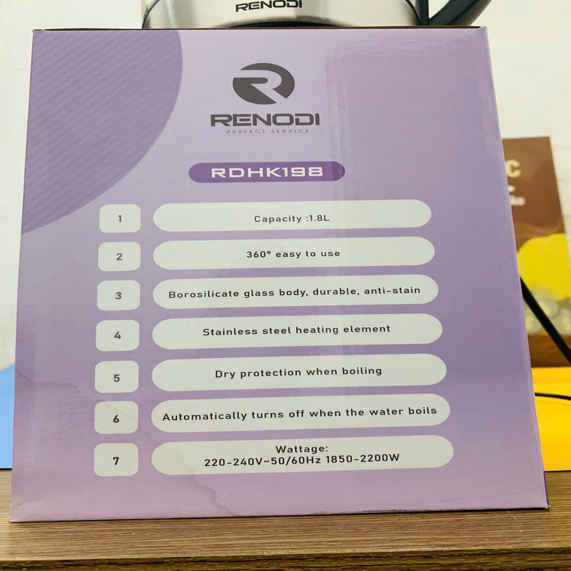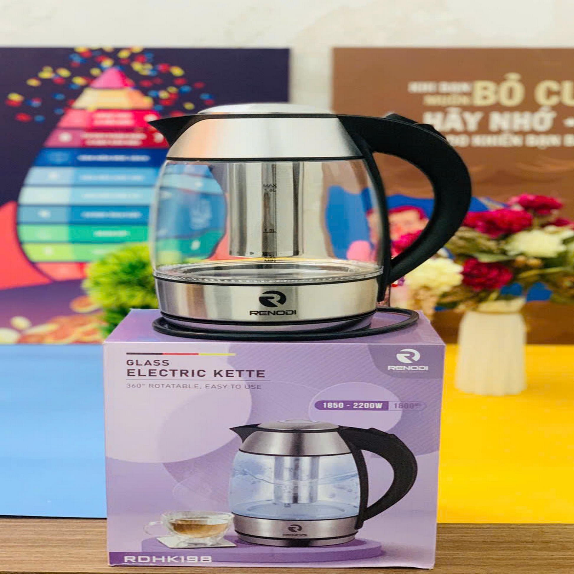 Ấm siêu tốc thuỷ tinh Renodi RDHK198, 1,8 Lít (Thùng 6 cái)