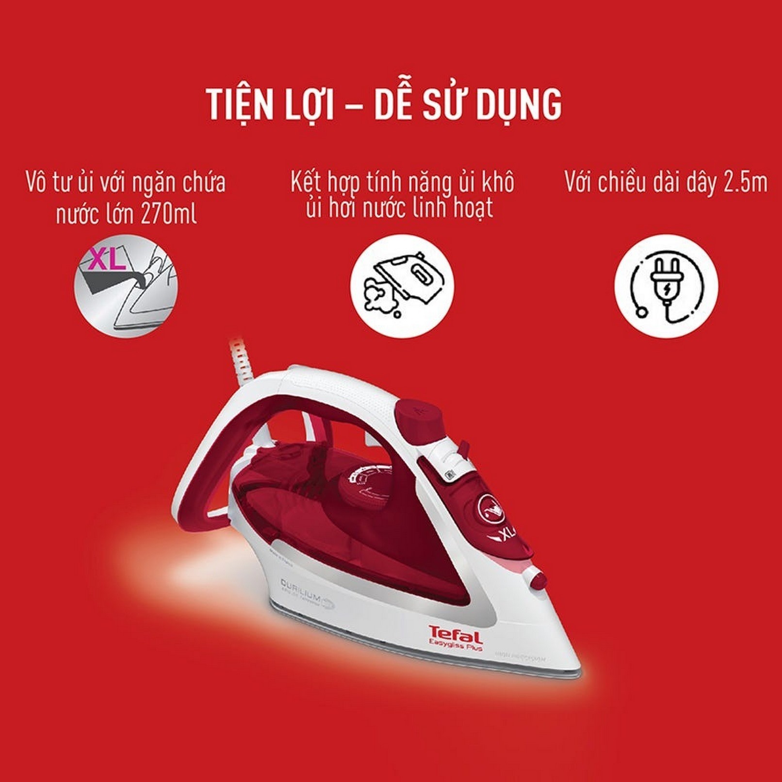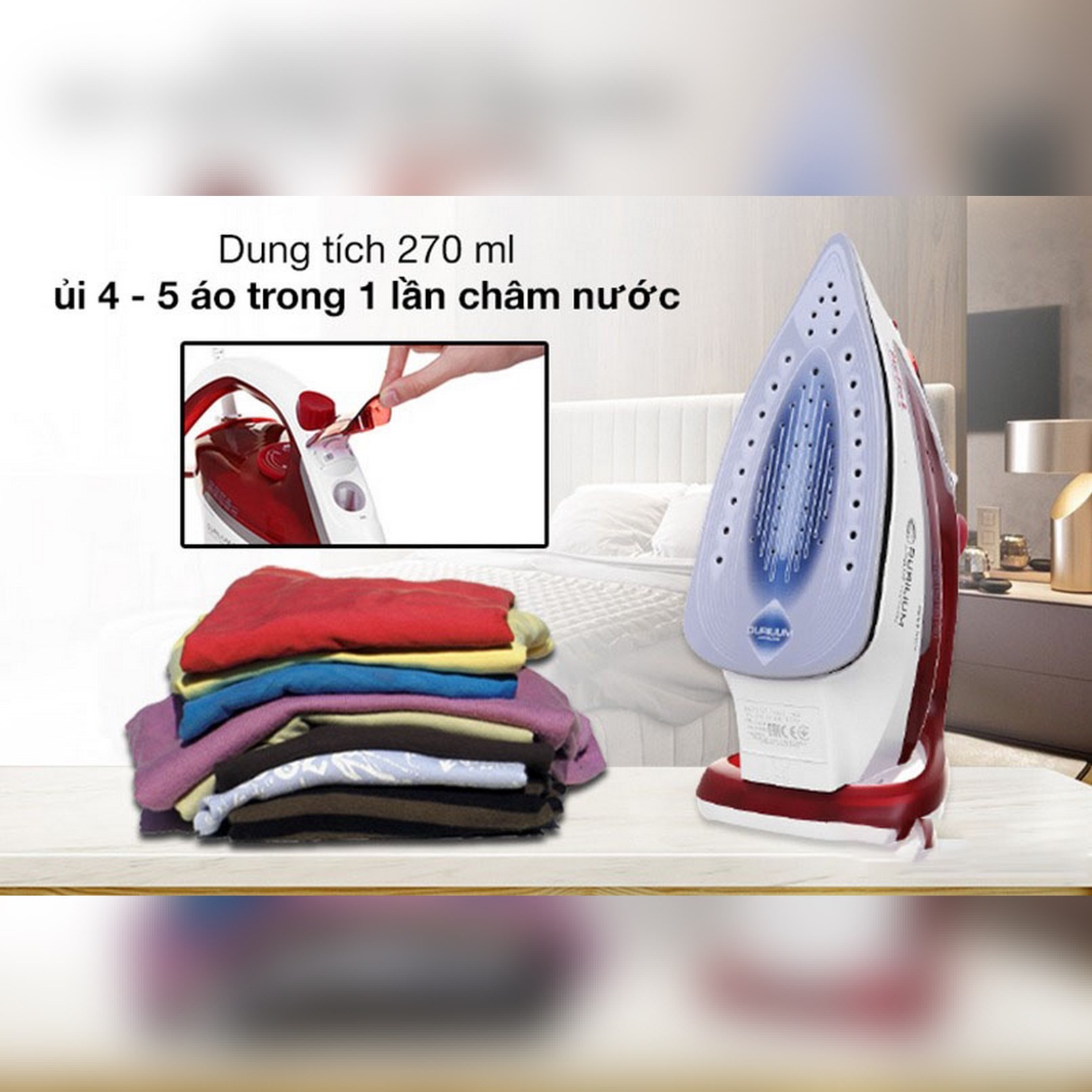 Bàn ủi có khả năng phun hơi 195g/ phút là phẳng quần áo nhanh chóng