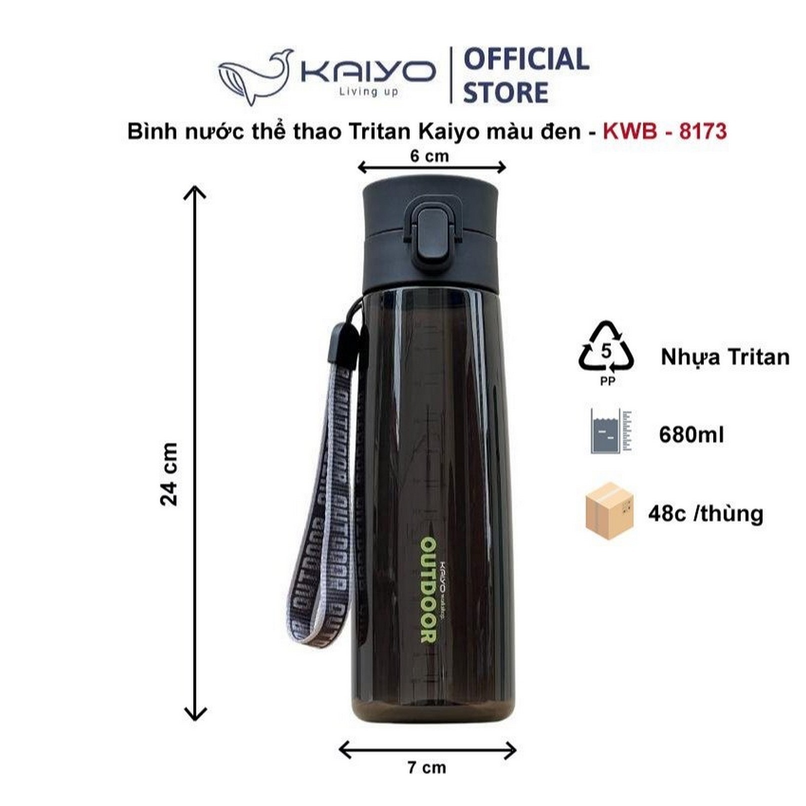 Bình Nước Thể Thao Tritan Kaiyo 680ml – Màu Đen