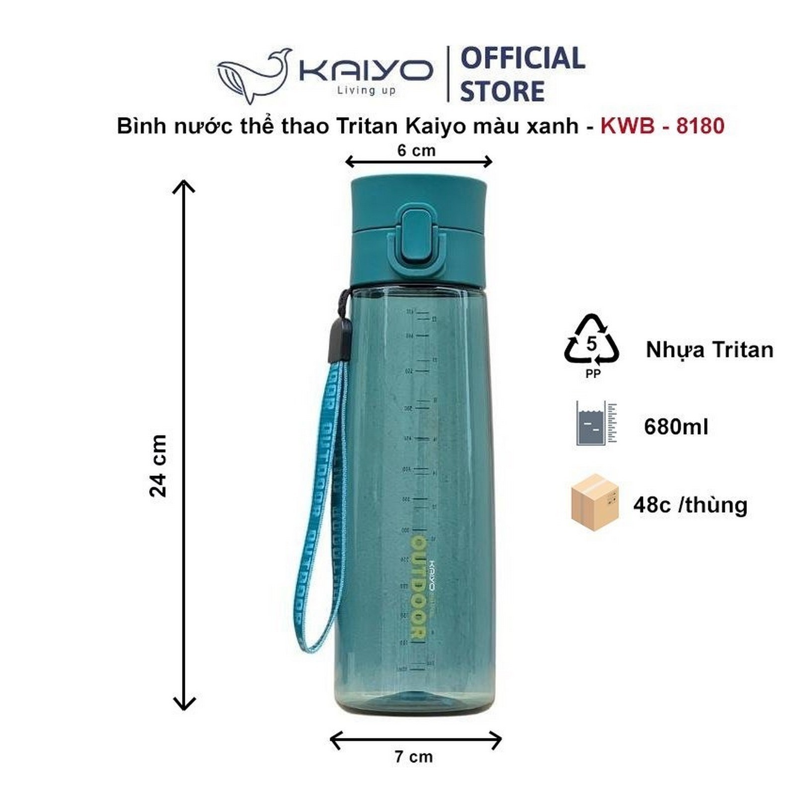 Bình Nước Thể Thao Tritan Kaiyo 680ml – Màu Xanh