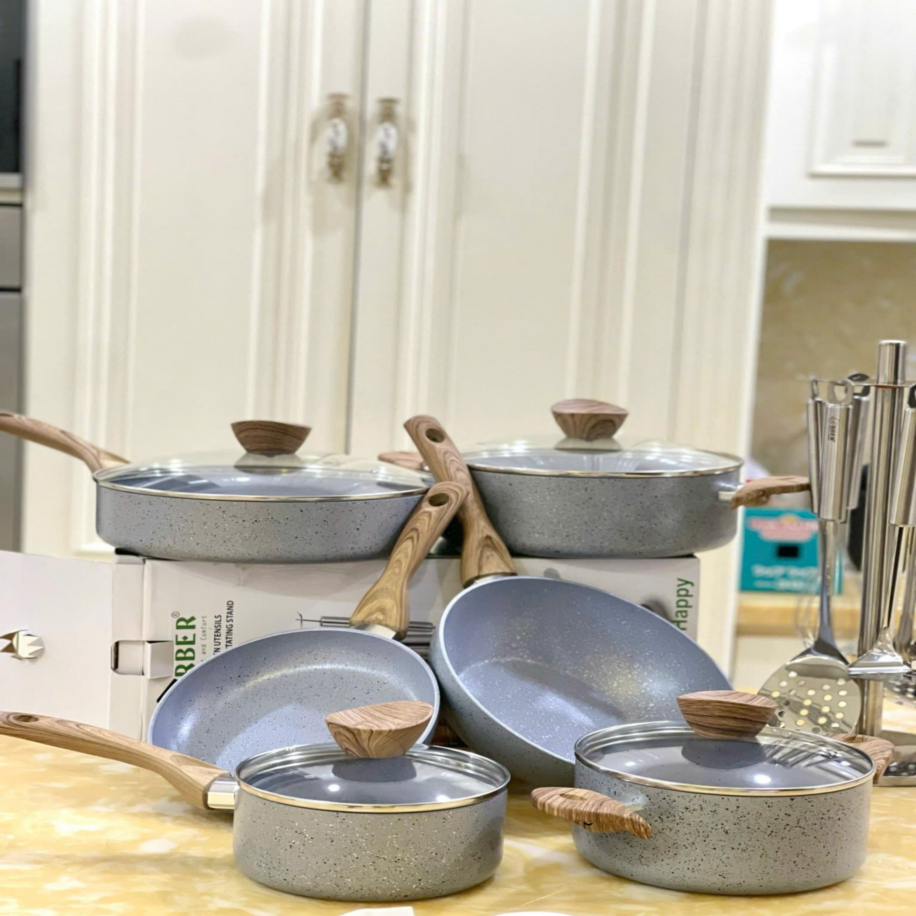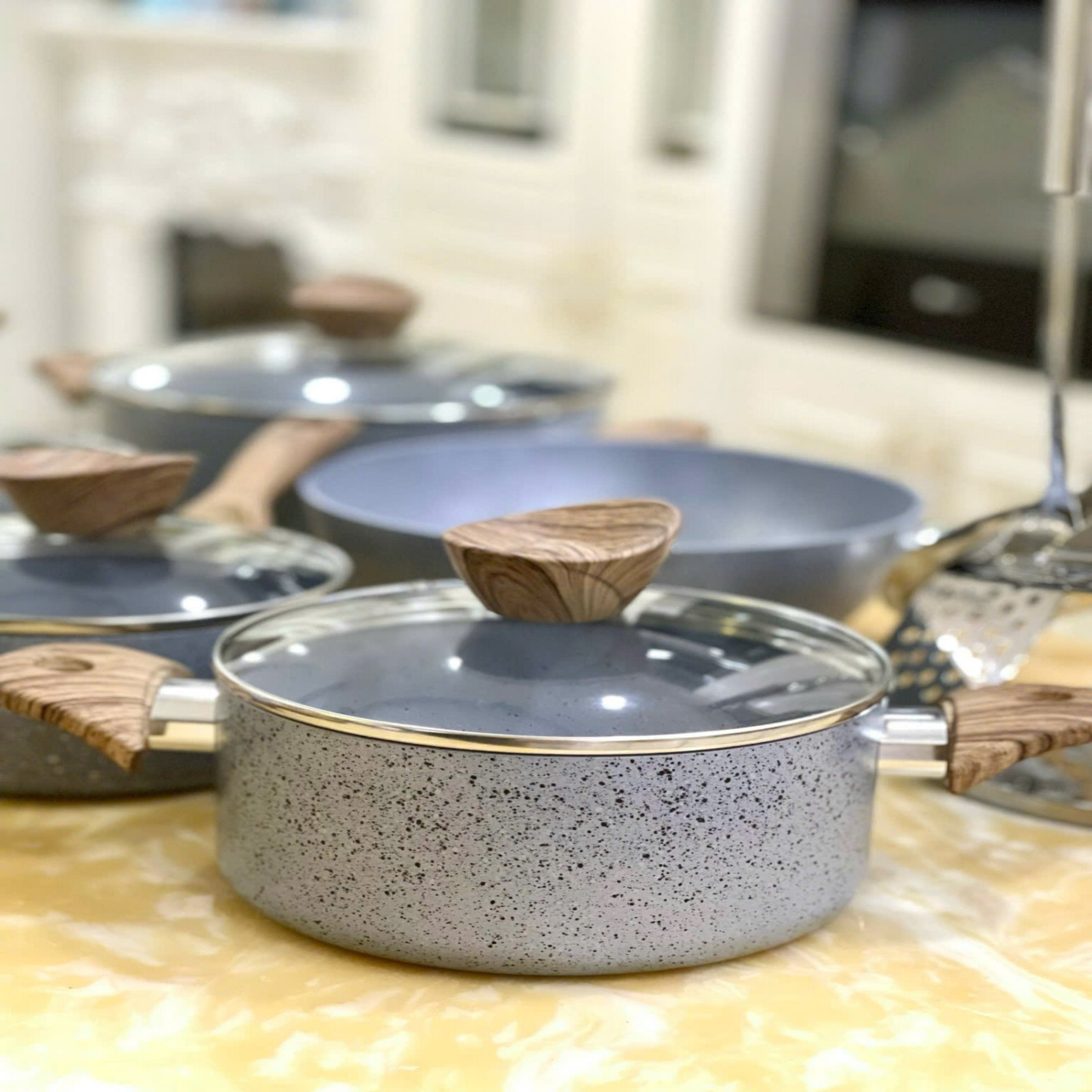 Nồi chảo nóng lâu nên cần dùng tay cầm cách nhiệt khi khuấy/di chuyển