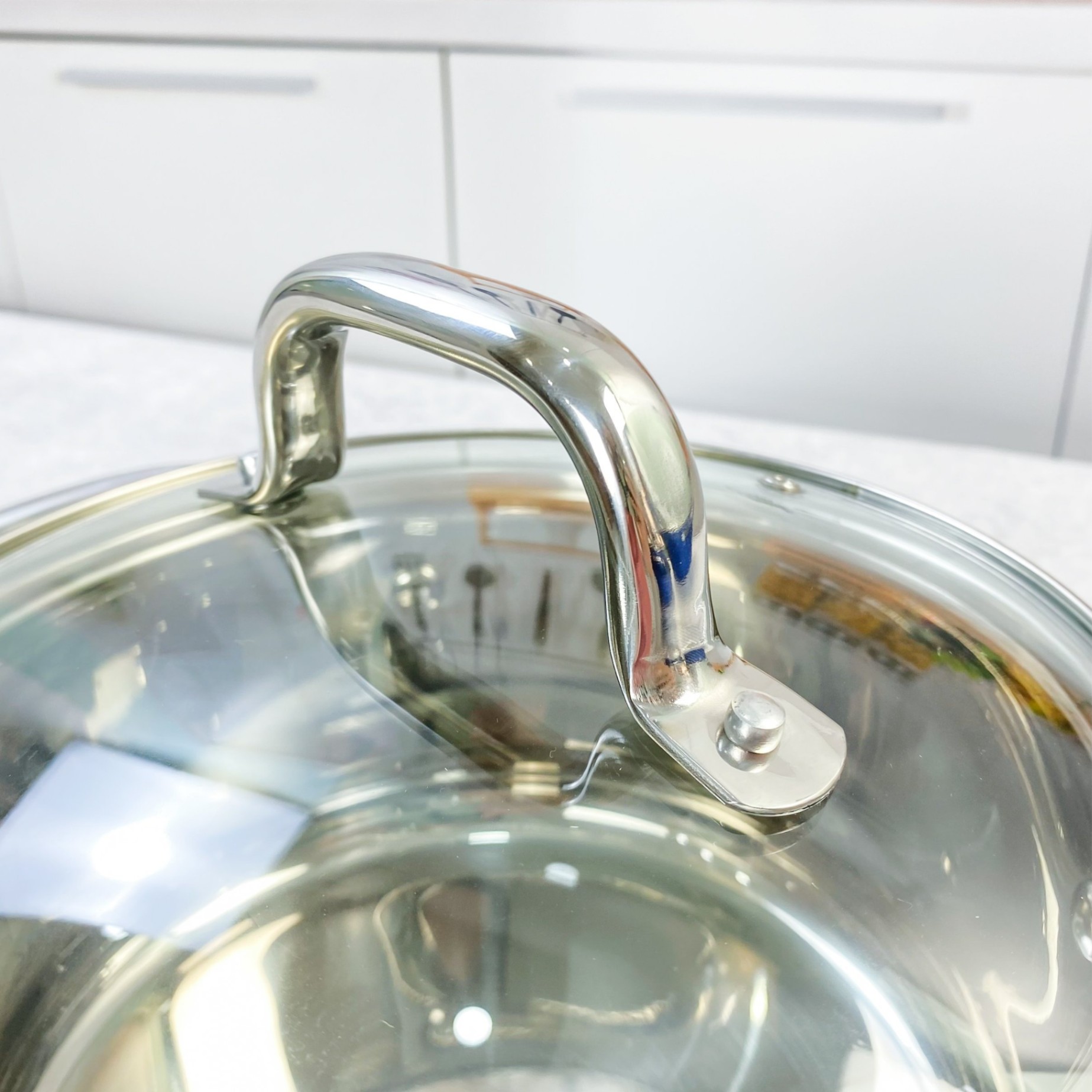 Đáy 3 lớp (inox–nhôm–inox bắt từ) – độ dày tốt, dẫn nhiệt nhanh, giữ nhiệt đều; phù hợp mọi loại bếp, đặc biệt bếp từ