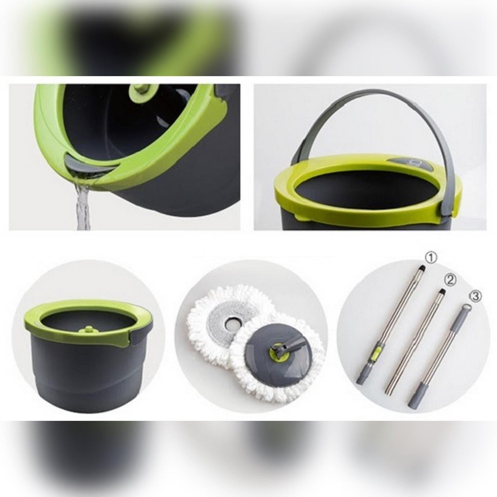 – Bộ sản phẩm gồm 1 thùng chứa nước, 1 cây lau và 2 bông lau