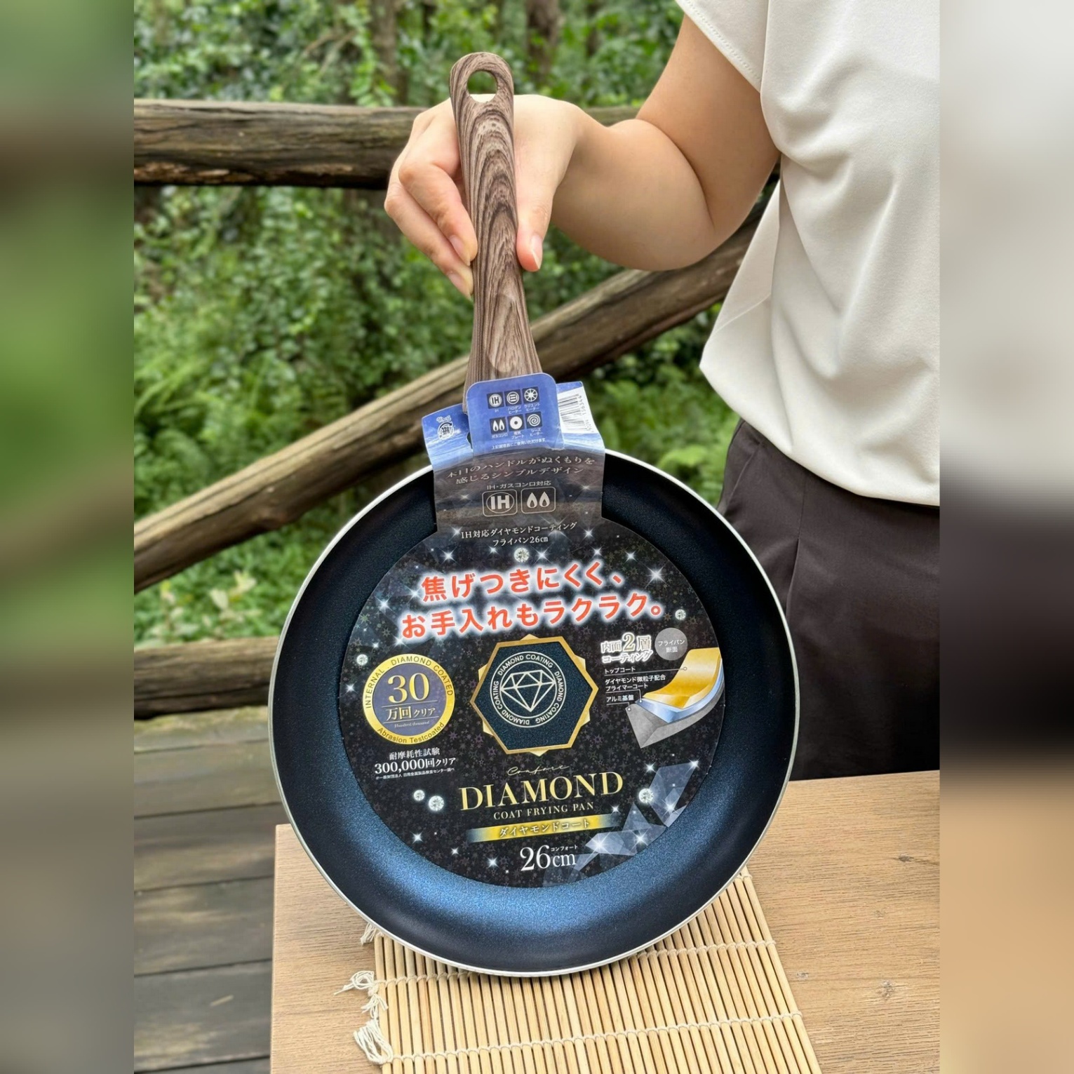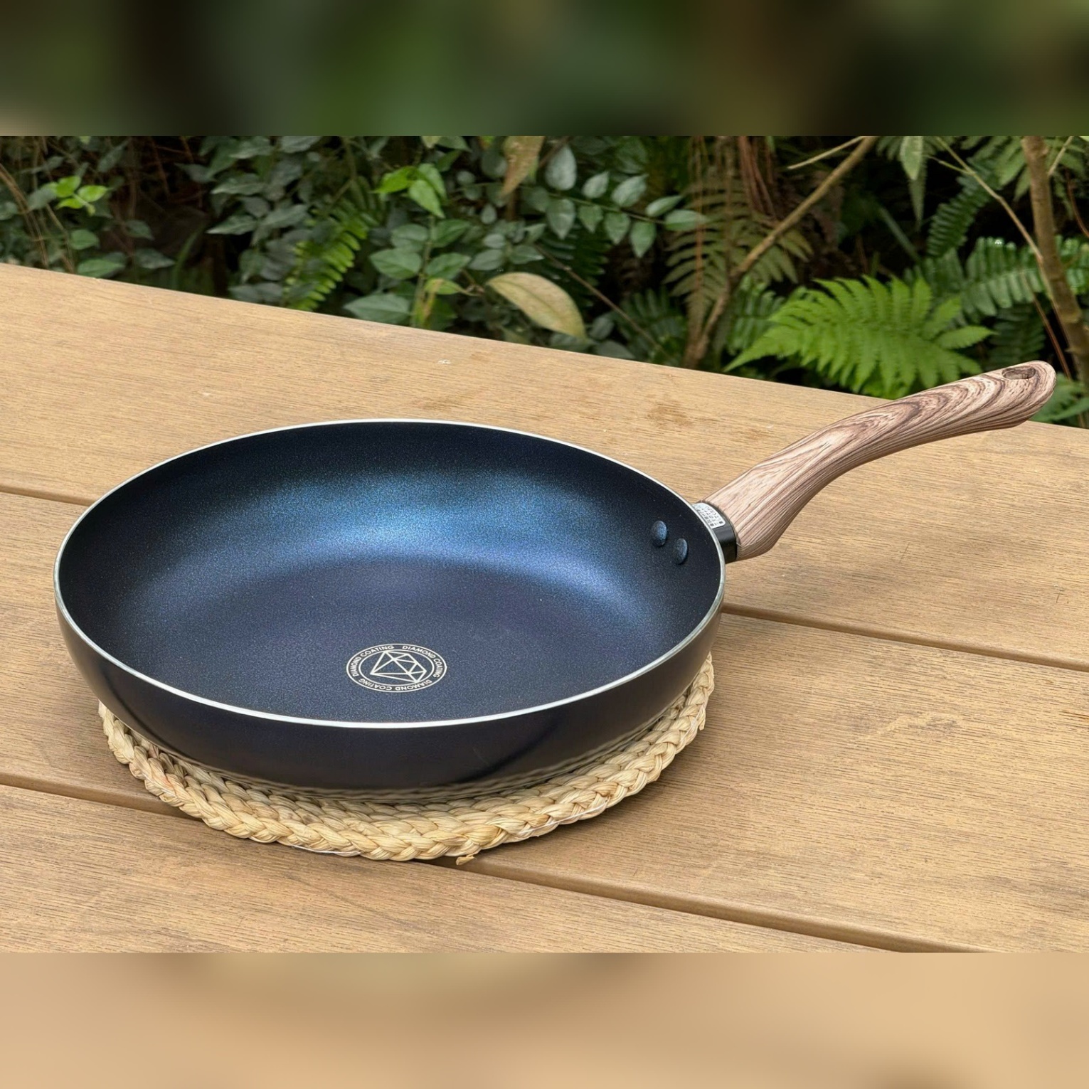 Chảo được làm bằng hợp kim nhôm chắc chắn, bề mặt chảo phủ lớp flo có chứa các tinh thể kim cương được nén với áp lực lớn giúp tăng độ bền chắc, chống mài mòn gấp 5 lần chảo thông thường. Đã được kiểm chứng khả năng chống mài mòn tới 300.000 lần. Dùng cho mọi loại bếp (Bếp gas, bếp điện từ, bếp hồng ngoại, bếp điện…).