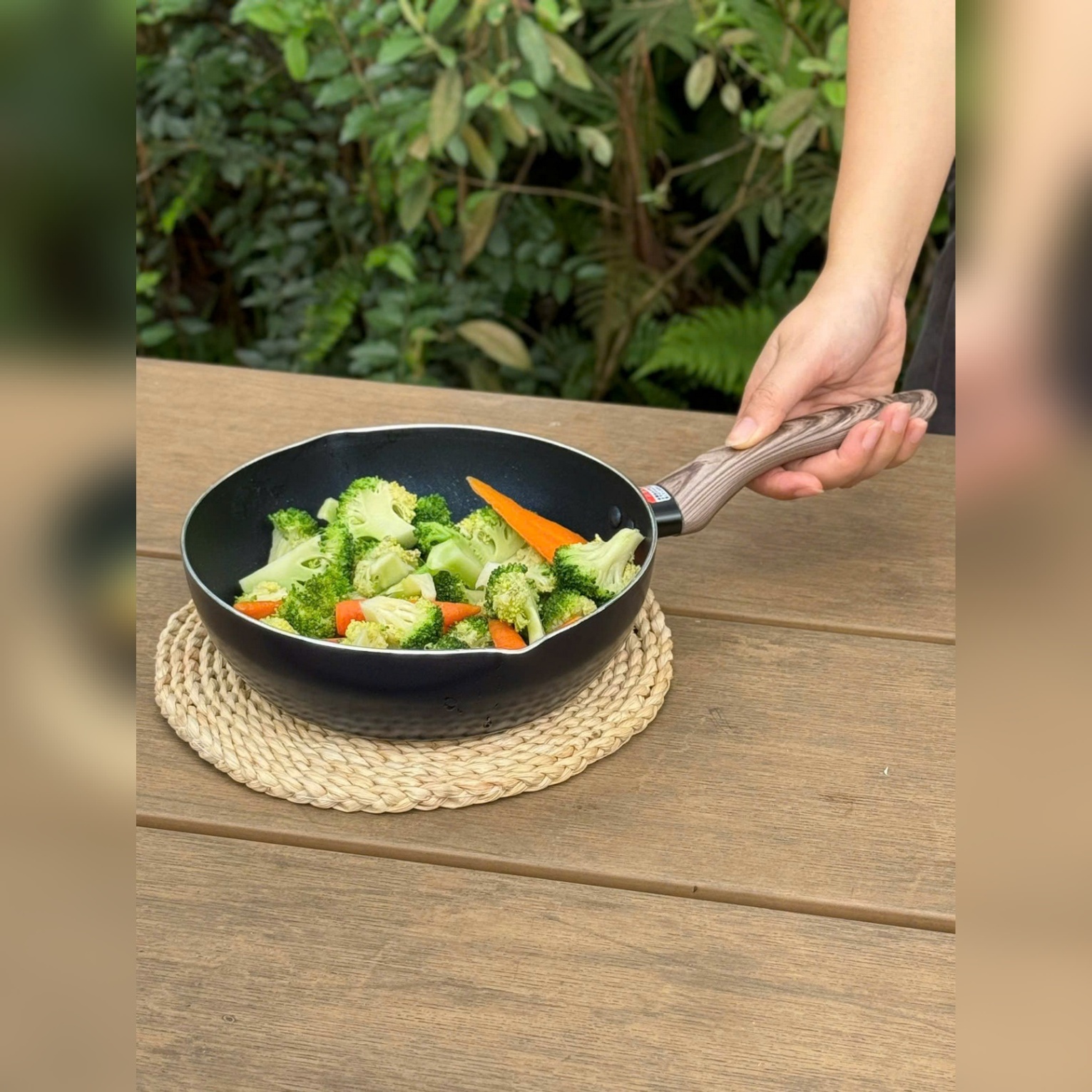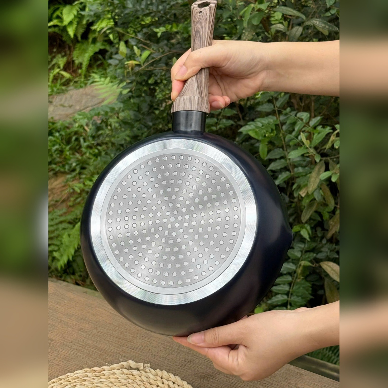 2. Chất liệu: Thân: hợp kim nhôm; Bề mặt: lớp phủ Flo có chứa các hạt kim cương