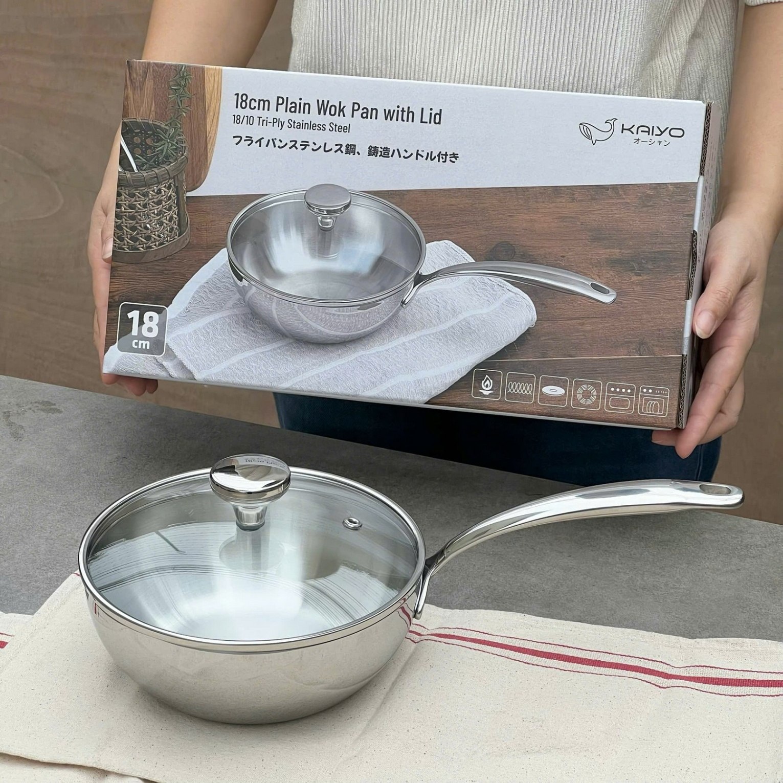 Truyền — giữ nhiệt tối ưu: kết cấu 3 lớp (inox 430, nhôm 1050, inox 18/10) giúp dẫn nhiệt nhanh – đều – giữ nhiệt lâu, giảm điểm nóng và tiết kiệm nhiên liệu. Dùng được trên mọi bếp (từ, ga, điện…) và sử dụng trong lò lên đến 260 °C.