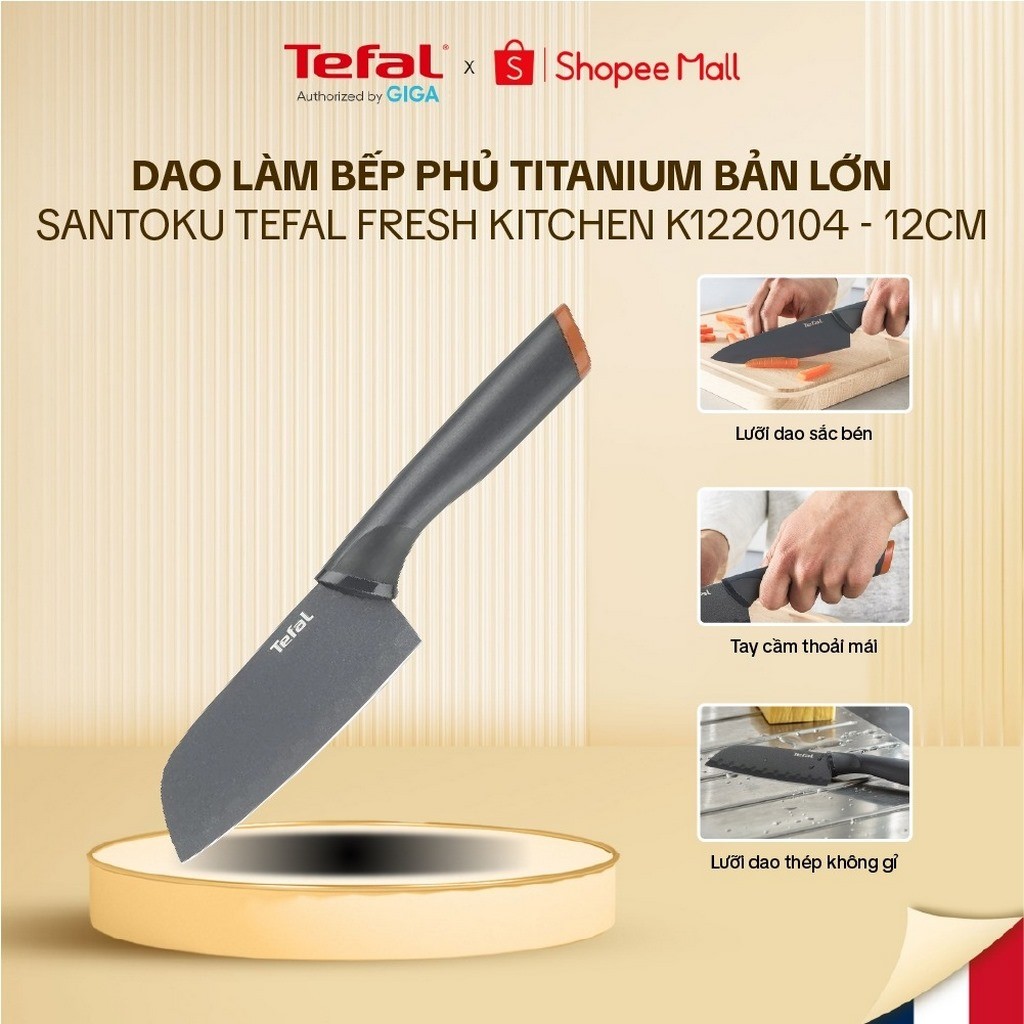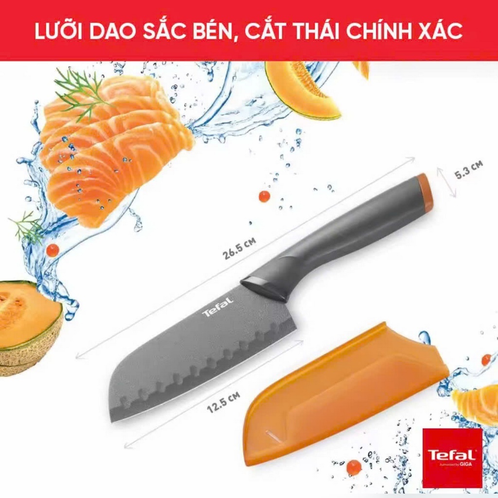 Dao làm bếp phủ Titanium bản lớn Santoku Tefal Fresh Kitchen K1220104-12cm