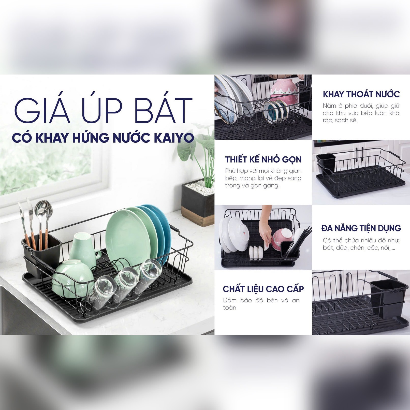 Giá Úp Bát Có Khay Hứng Nước Kaiyo – 45,4×32,3cm
