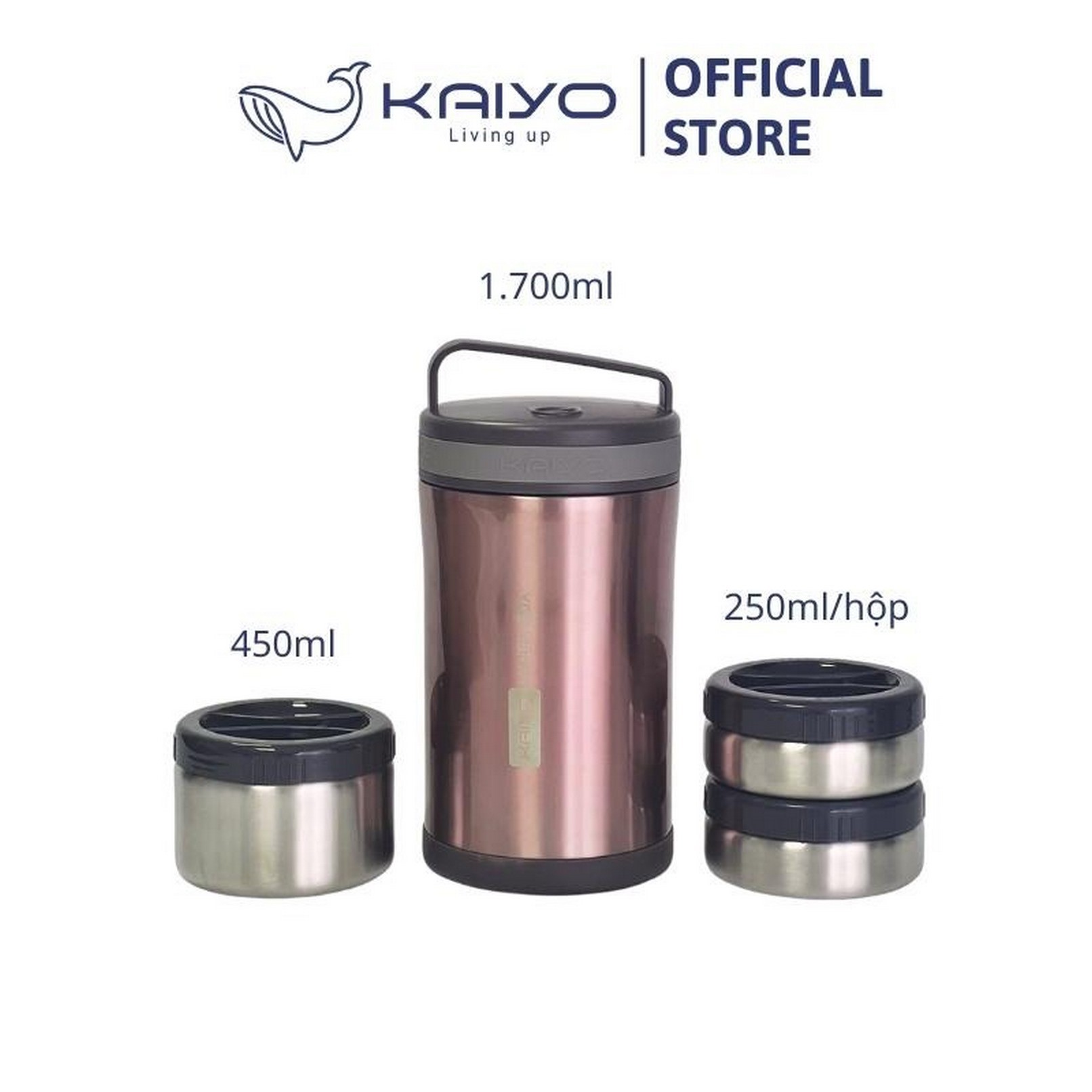 - + Hộp cơm giữ nhiệt Kaiyo 1700ml được trang bị công nghệ giữ nhiệt chân không hiện đại, làm từ các chất liệu cao cấp (inox 304, phủ ion bạc Ag+ kháng khuẩn, nhựa PP an toàn, gioăng silicon) giúp giữ nóng thức ăn trong suốt 12h liền.