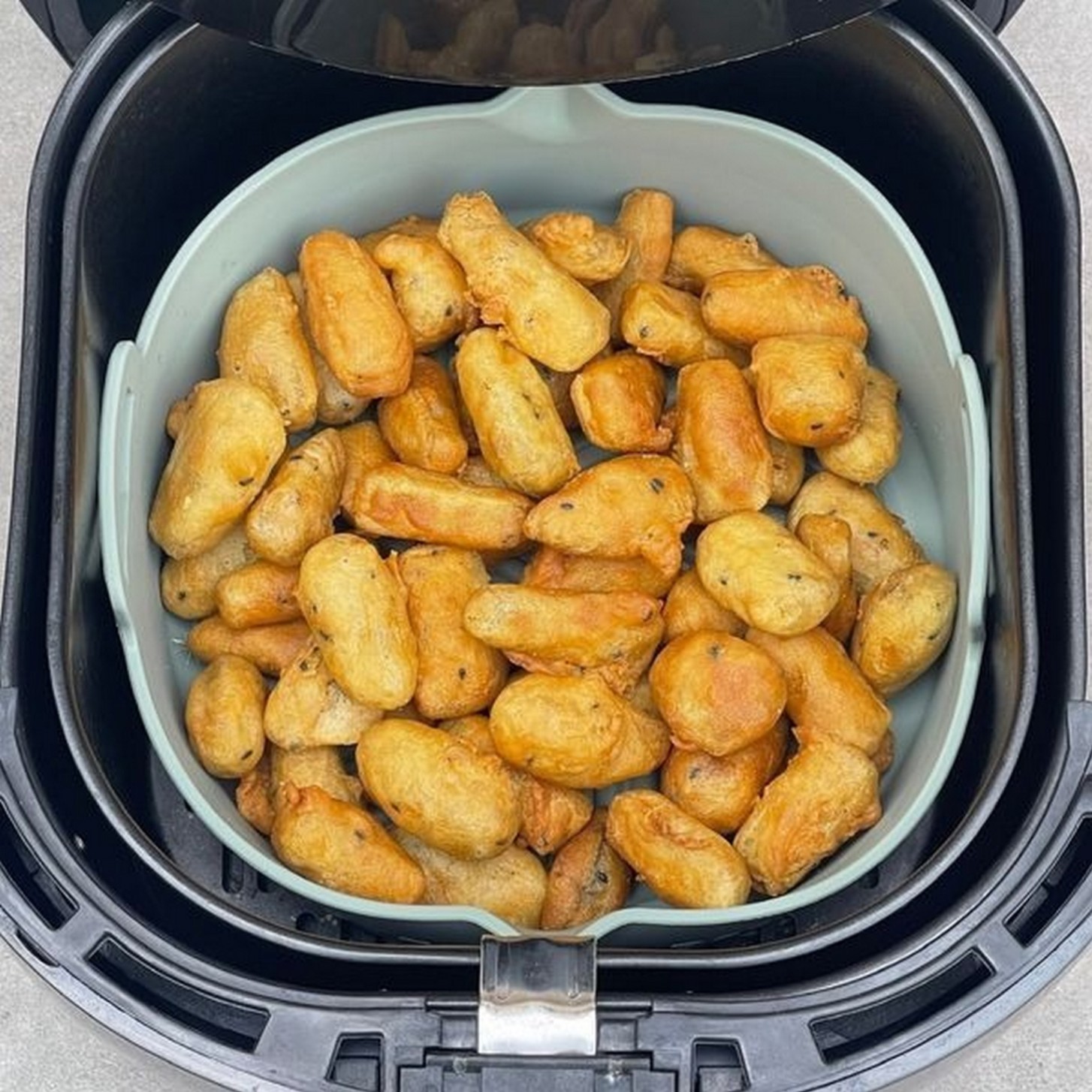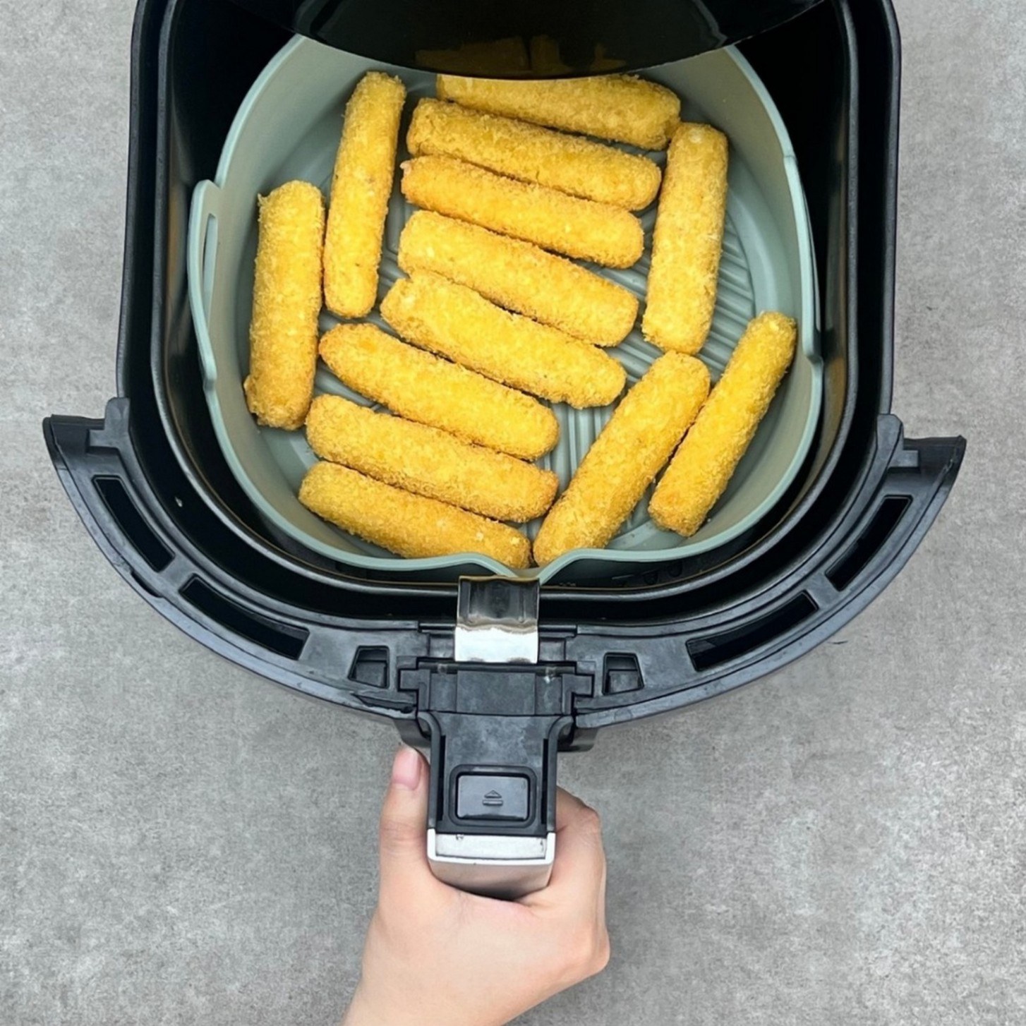 Bỏ vào nồi chiên không dầu, lò vi sóng hoặc lò nướng. -
