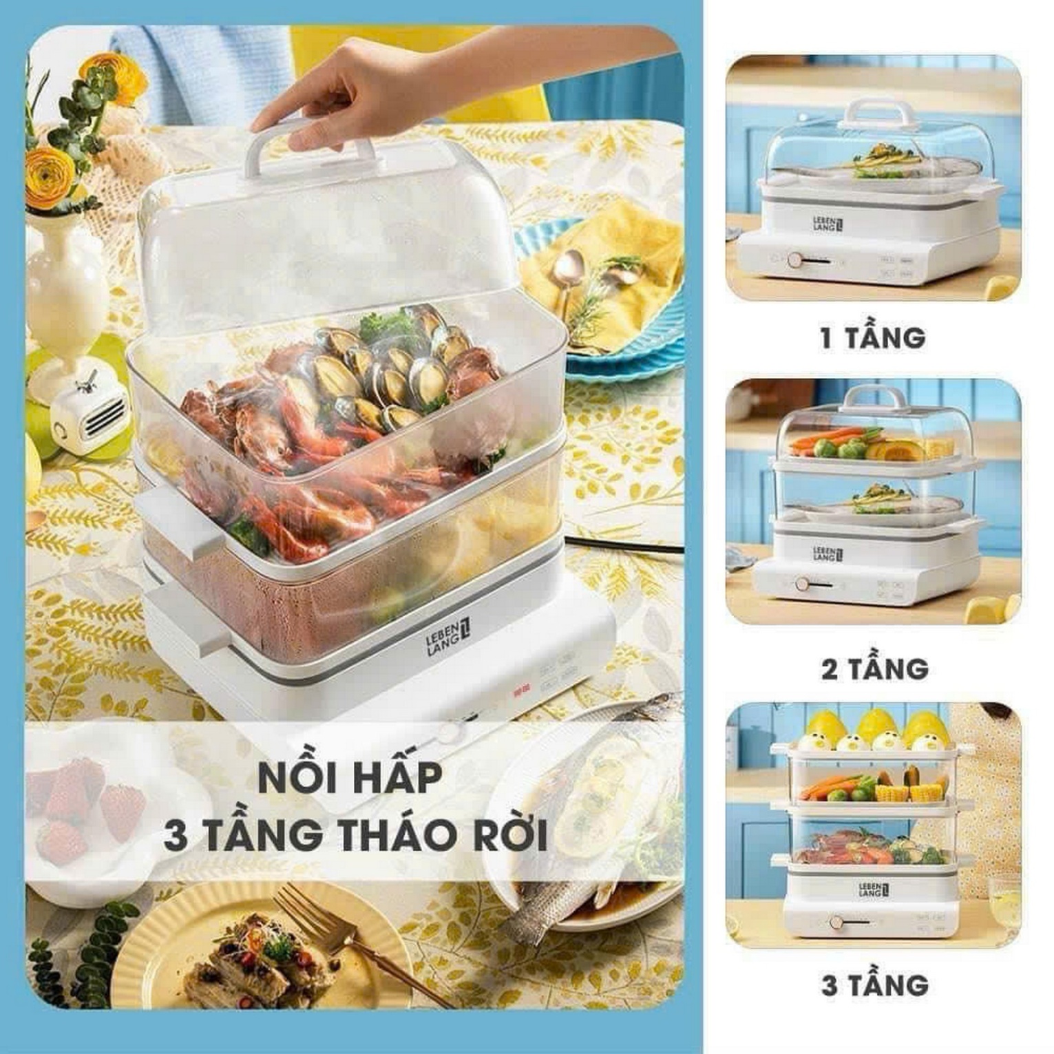 – Nồi hấp 3 tầng