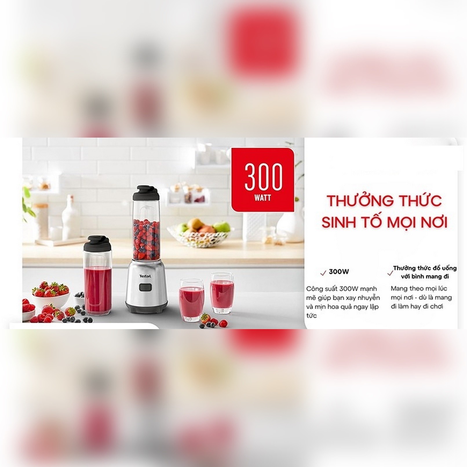 Công suất 300 W kết hợp động cơ cao tốc, cho khả năng xay mịn nhanh chóng — phù hợp làm sinh tố, smoothie, nước ép, và thậm chí đá bào khi dùng chế độ nhấn (pulse)