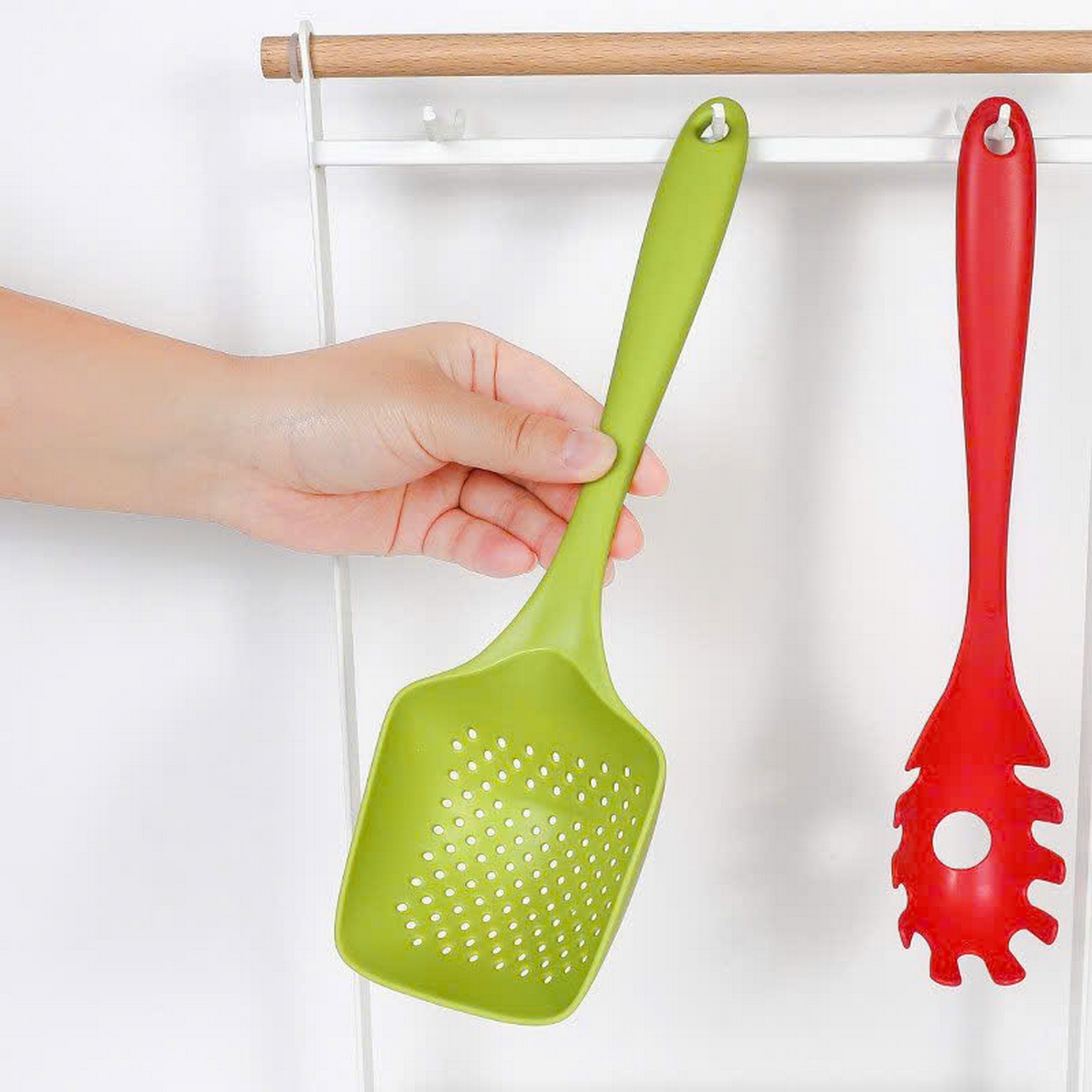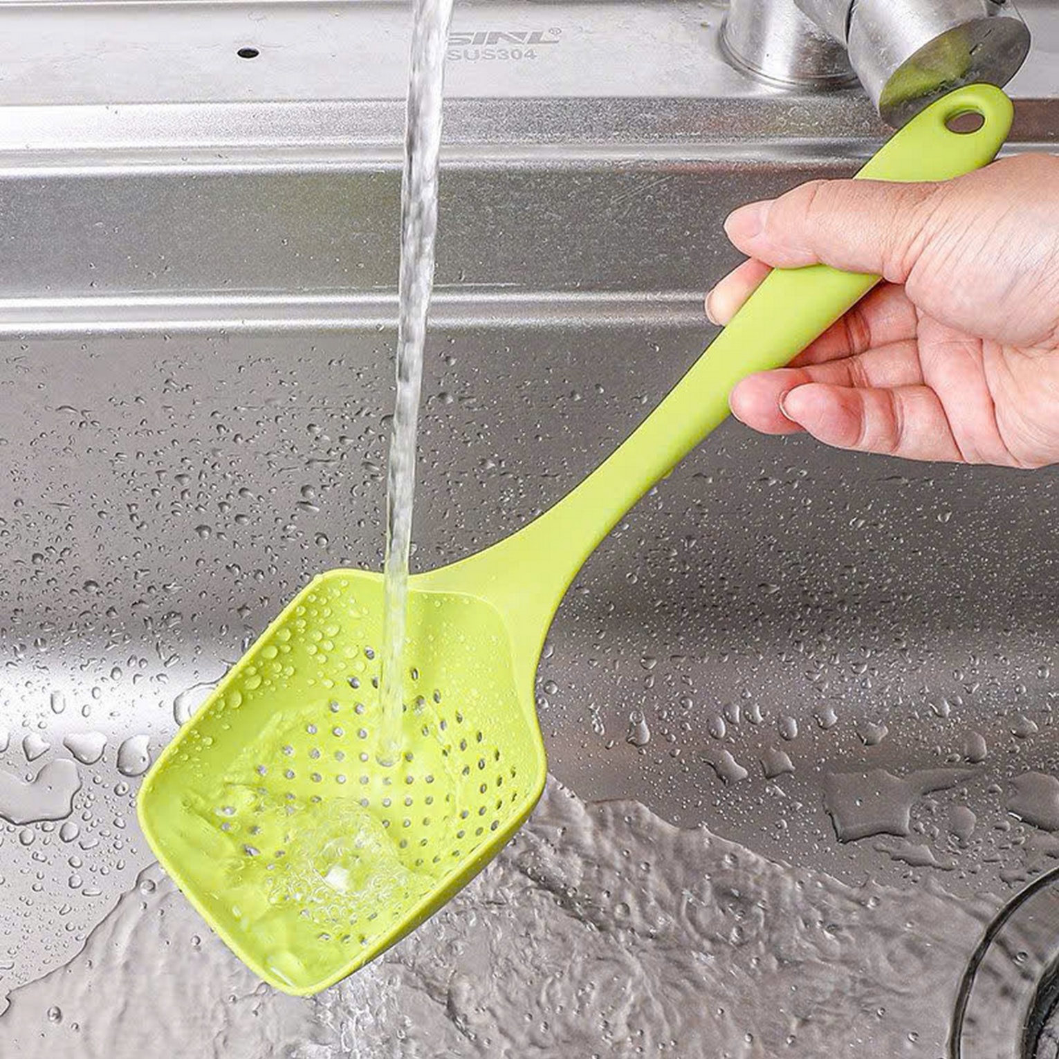– Công dụng: dùng để trần/ vớt rau luộc, đồ chiên rán hay rau xào ko bị nhiều nước hoặc trần bún phở…vv đầu muôi mềm dẻo không làm trầy xước các bề mặt của xoong chảo