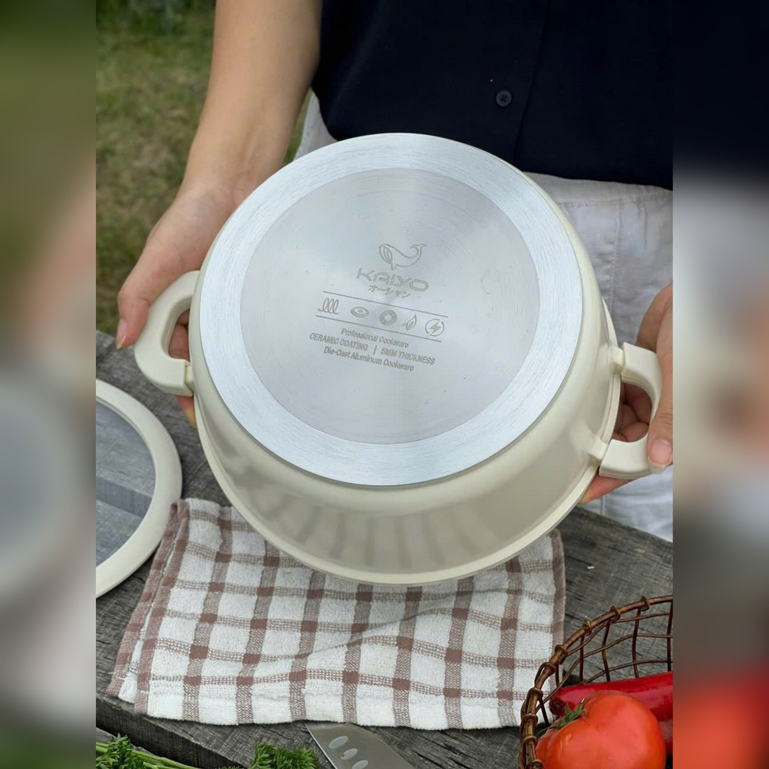 Nồi nhôm đúc đáy từ nguyên khối Elegant Kaiyo là nồi nhôm đúc cao cấp với thành và đáy rất dày (thành dày 2.2mm, đáy dày 5mm), lòng nồi tráng Ceramic, thân nồi tráng sơn chịu nhiệt, đáy từ nguyên tấm giúp hấp thụ nhiệt nhanh, toả nhiệt đều, giữ nhiệt cao, nên chế biến thức ăn rất ngon, nhanh chín mà vẫn tiết kiệm được thời gian và nhiên liệu. Nồi có thể sử dụng trên mọi loại bếp.