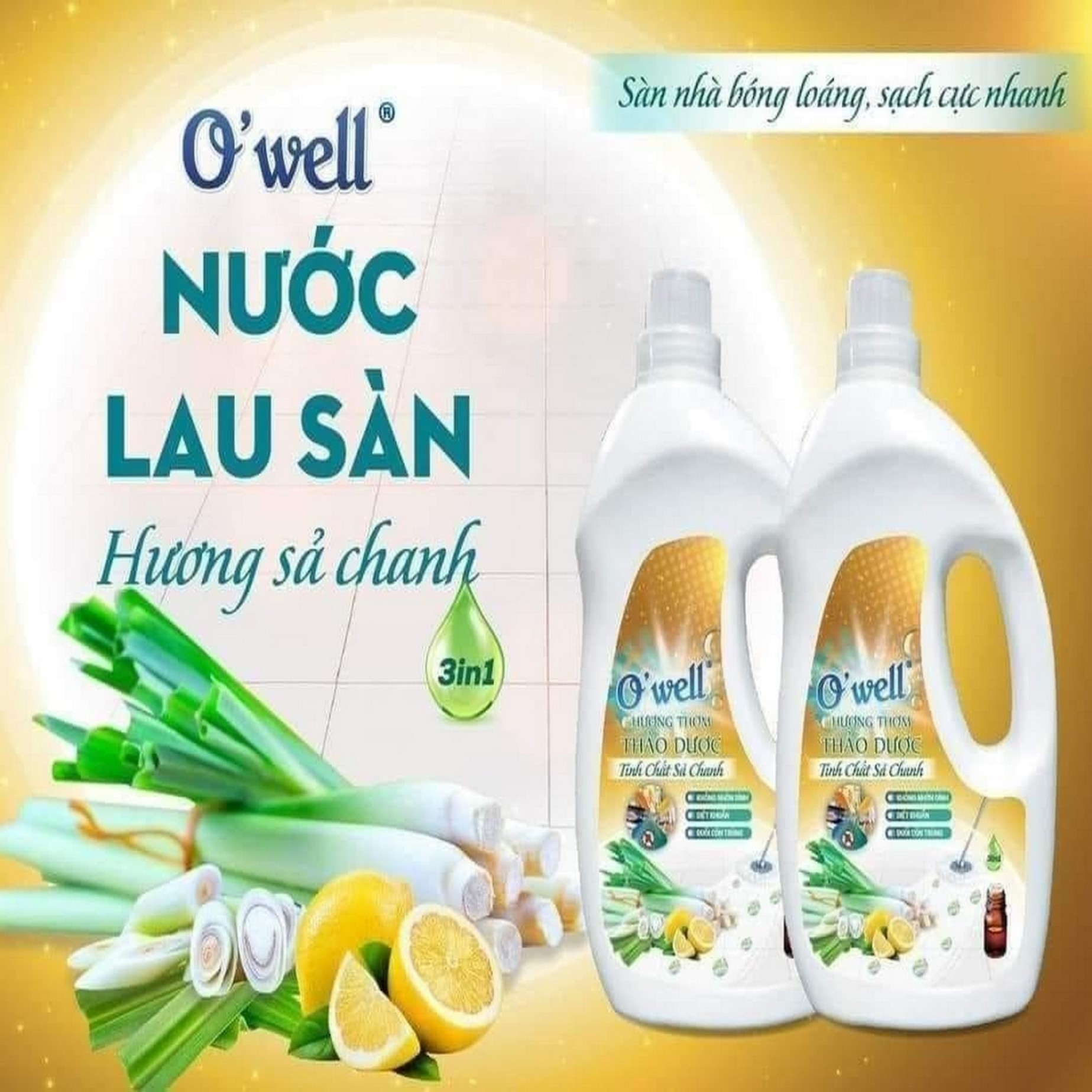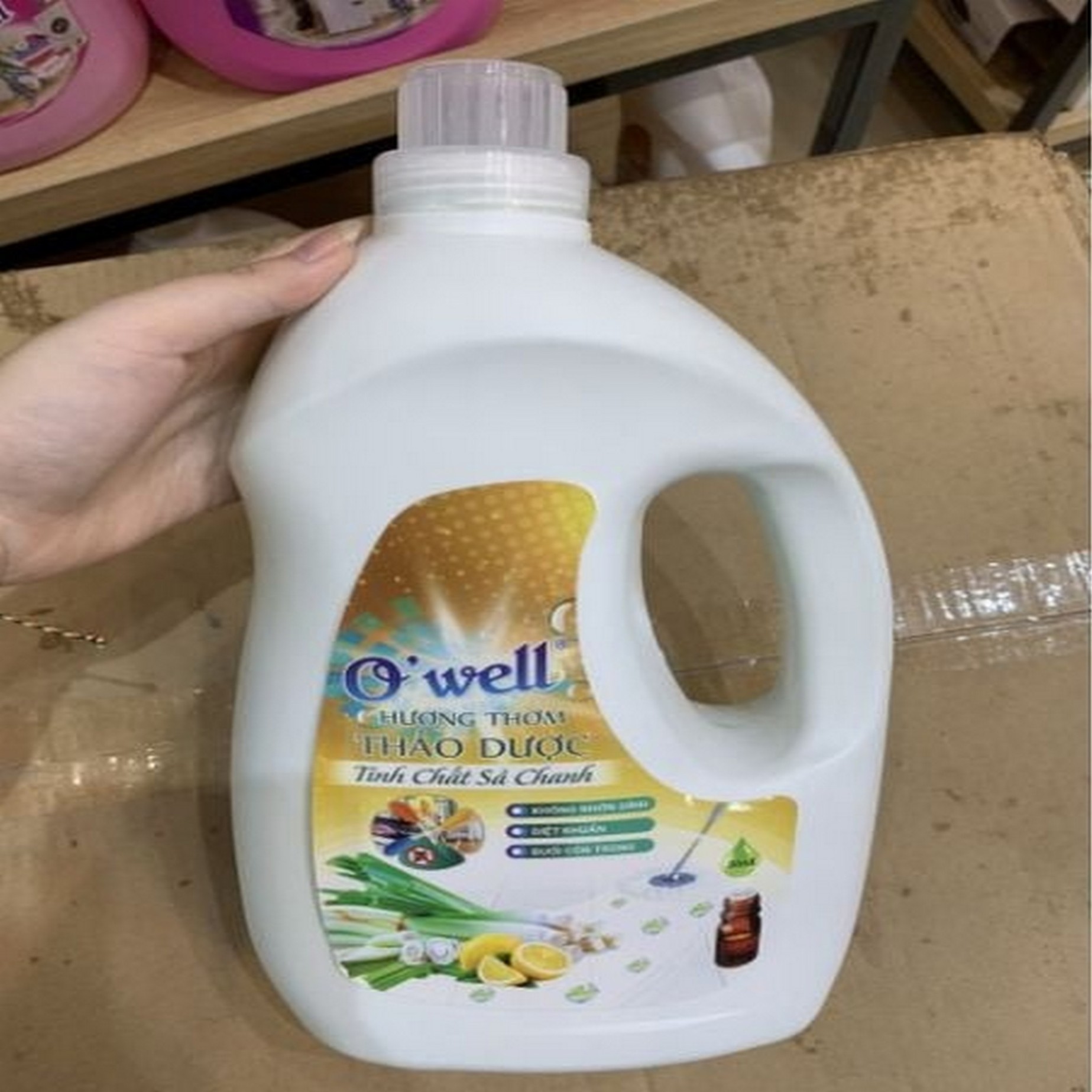 Khoảng 50–60 ml nước lau sàn O’Well với 5–6 lít nước sạch (tỷ lệ ~10 ml/lít nước)