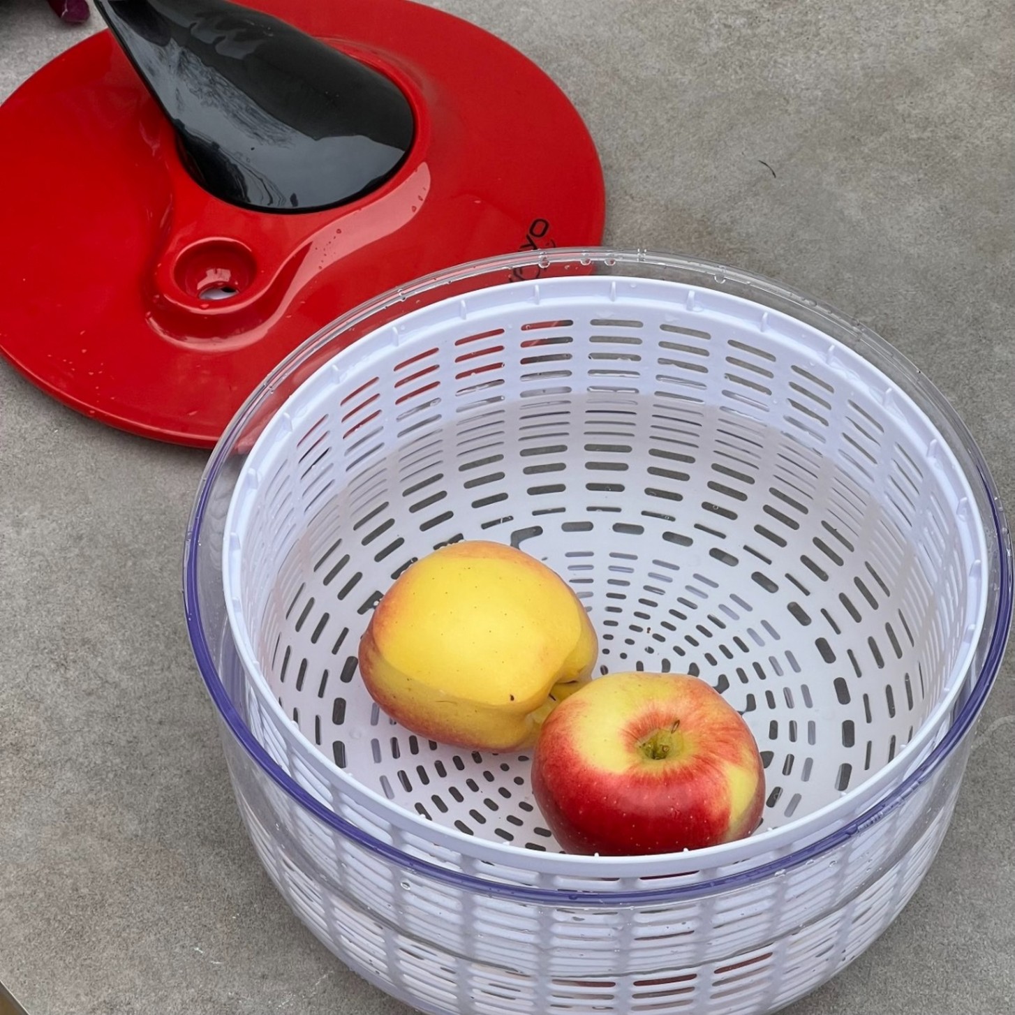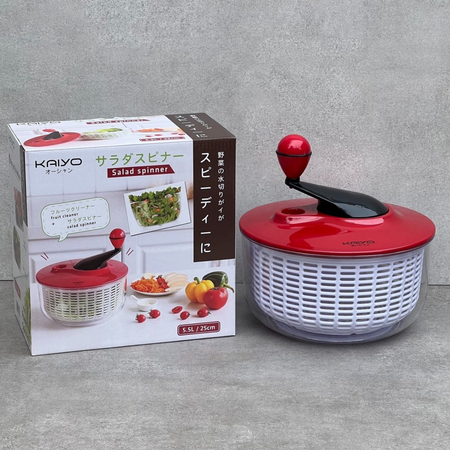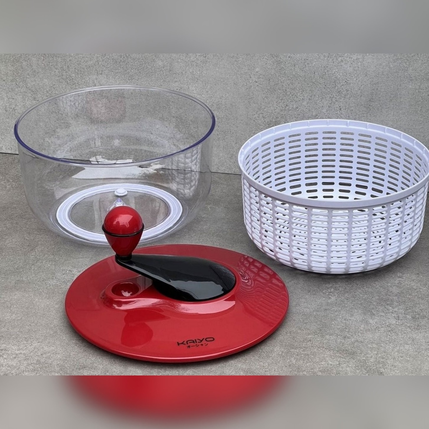 Rổ quay rau li tâm Kaiyo được làm từ dòng nhựa cao cấp (tô bên ngoài bằng nhựa thủy tinh PS trong suốt và chịu nhiệt cao, rổ bên trong bằng nhựa PP), đáy rổ có gioăng silicon chống trượt có ưu điểm vượt trội: lực xoay nhẹ, tốc độ xoay mạnh giúp quay li tâm làm kiệt nước thực phẩm và làm sạch hoa quả nhỏ, khó rửa như táo, nho …