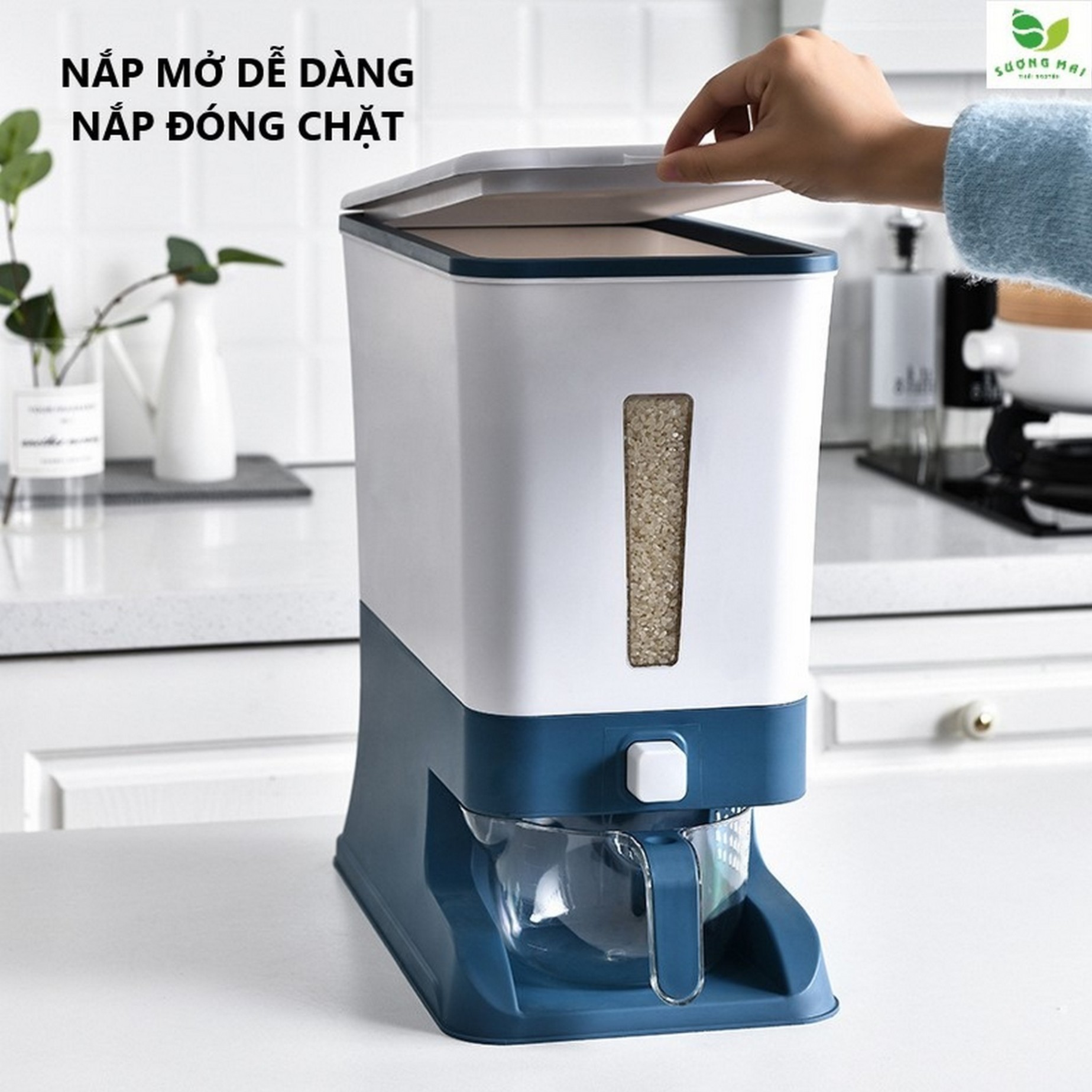 ⚡ Thiết kế kín đáo và an toàn, giúp bảo vệ gạo không bị chuột, kiến, mối, gián,… xâm nhập.