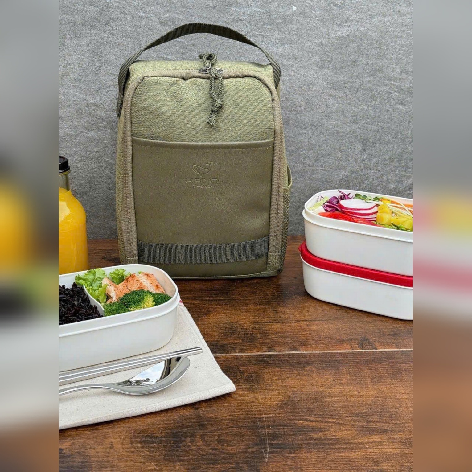 2. Phân phối gọn gàng: có thể đựng thêm muỗng, khăn giấy, điện thoại… trong ngăn phụ/lưới – tiện lợi khi mang đi học hoặc đi làm.